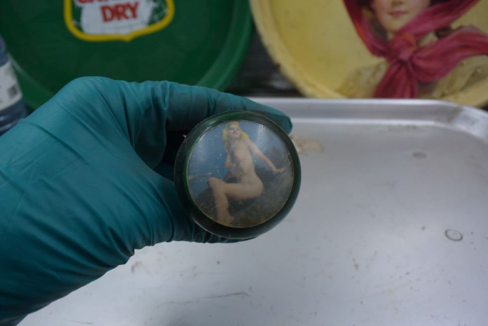 1950's Drive in Movie Snack Tray,  Santay  Nude Lady Steering Wheel Knob