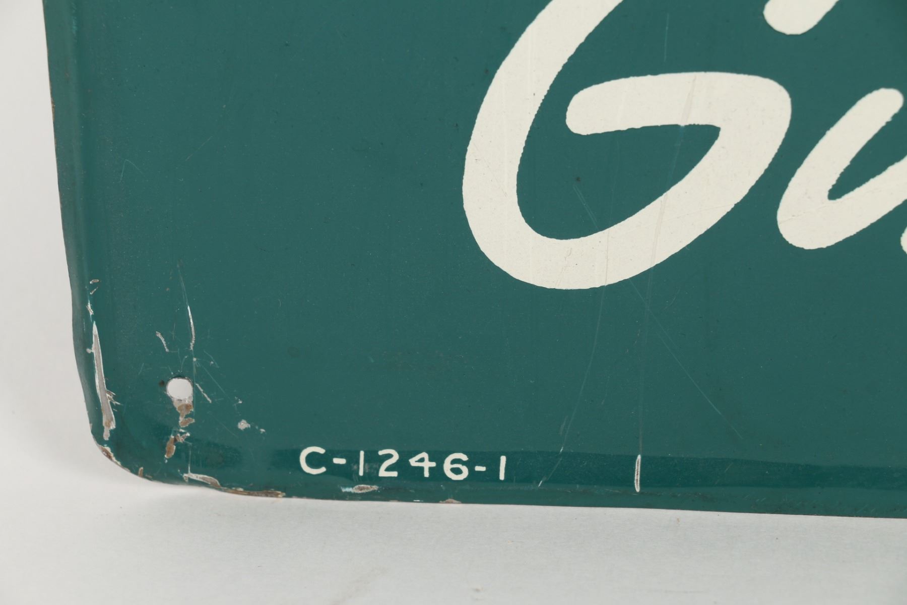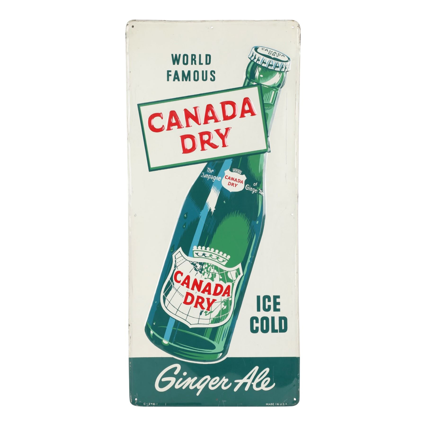 American. Circa 1950. Embossed, lithographed tin. Marked "C-1246-1" - Made in USA", lower edge. 29.75" x 13.5". $400-600.