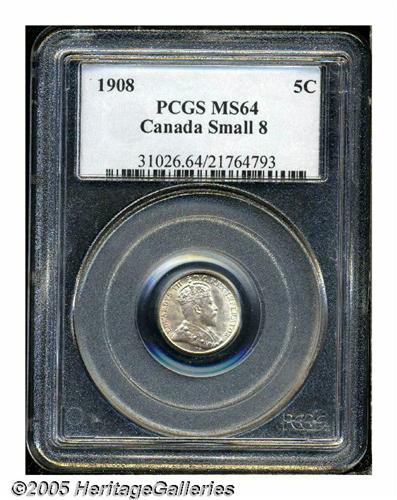 <B>Edward VII 5 Cents 1908 Small 8, </B></I>KM13, MS64 PCGS, very attractive example.