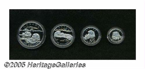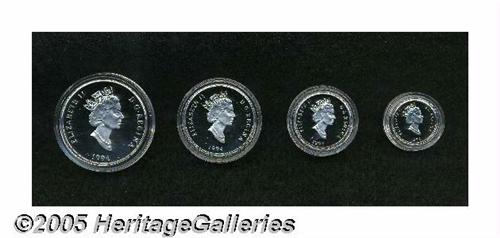 <B>Elizabeth II platinum Proof Set 1994, </B></I>KM-PS25, 30, 75, 150 and 300 Dollars, KM252-255, in Gem Proof, and presented in the original wood box of issue with descriptive card. All four coins feature one or more sea otters - oooo, aren't they cute?