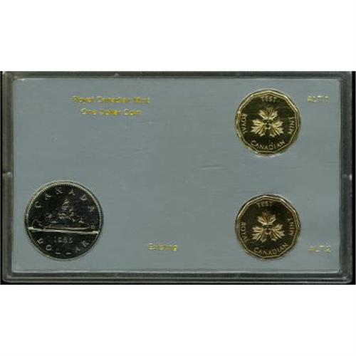 <B>Elizabeth II RCM Dollar coin set,</B></I> <B>1985 silver Dollar, and 2 mint test markers, Proof in case.</B></I><BR><BR><b>Shipping:</b> Coins & Currency (<a target="_blank" href="http://www.heritageauctions.com/common/shipping.php">view shipping information</a>) <BR><BR><B>Importan