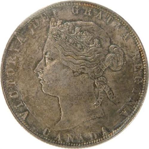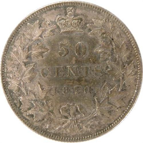 Canada Fifty Cents 1870 LCW ICCS MS-64. This is a fully struck piece with great lustre and rather flawless surfaces that are very attractively toned in light-medium golden olives with iridescent blue accents and overtones. It is tied with one other as the second highest graded by ICCS