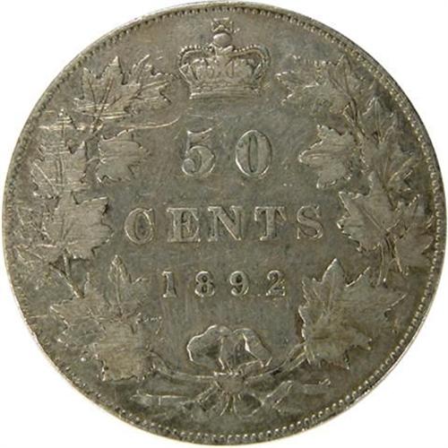 Canada Fifty Cents 1892 Obverse 4, VF. Pale golden toning