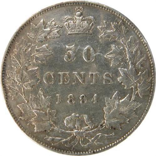Canada Fifty Cents 1894 ICCS VF-30. This is a sharp example with pale golden toning. Only eighteen examples have been graded higher by ICCS