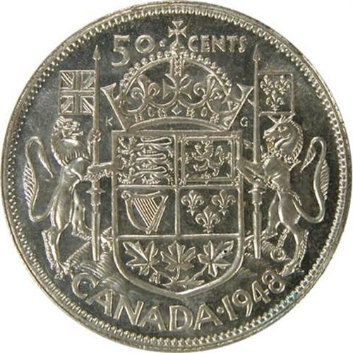 Canada Fifty Cents 1948 ICCS MS-60. Near untoned
