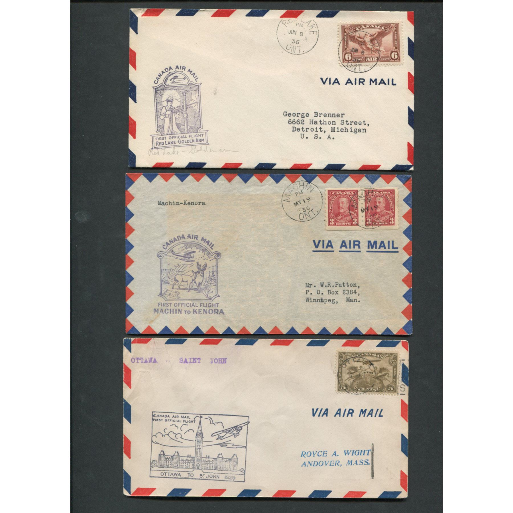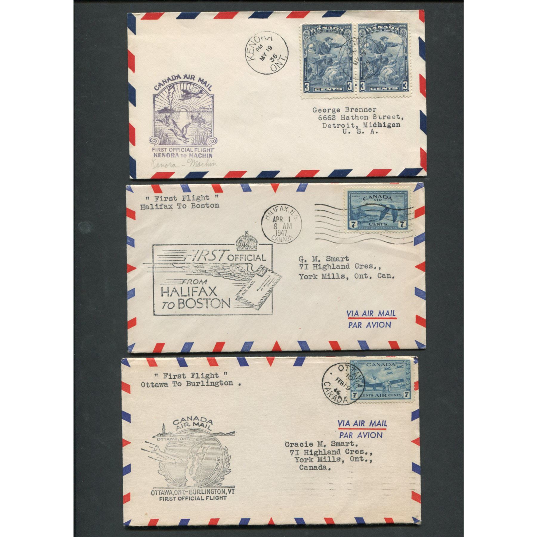 Canada First Flight covers collection. This collection contains 6 covers from 1936 and 1947. Please see photos.