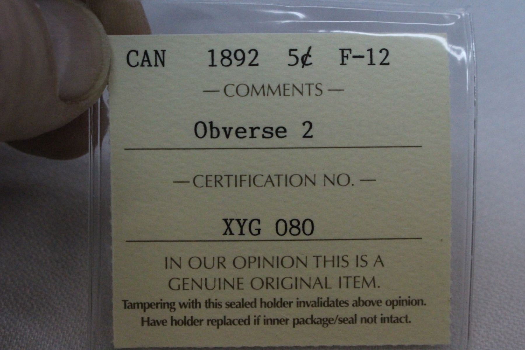 1892; Graded F-12; Obverse 2; Silver