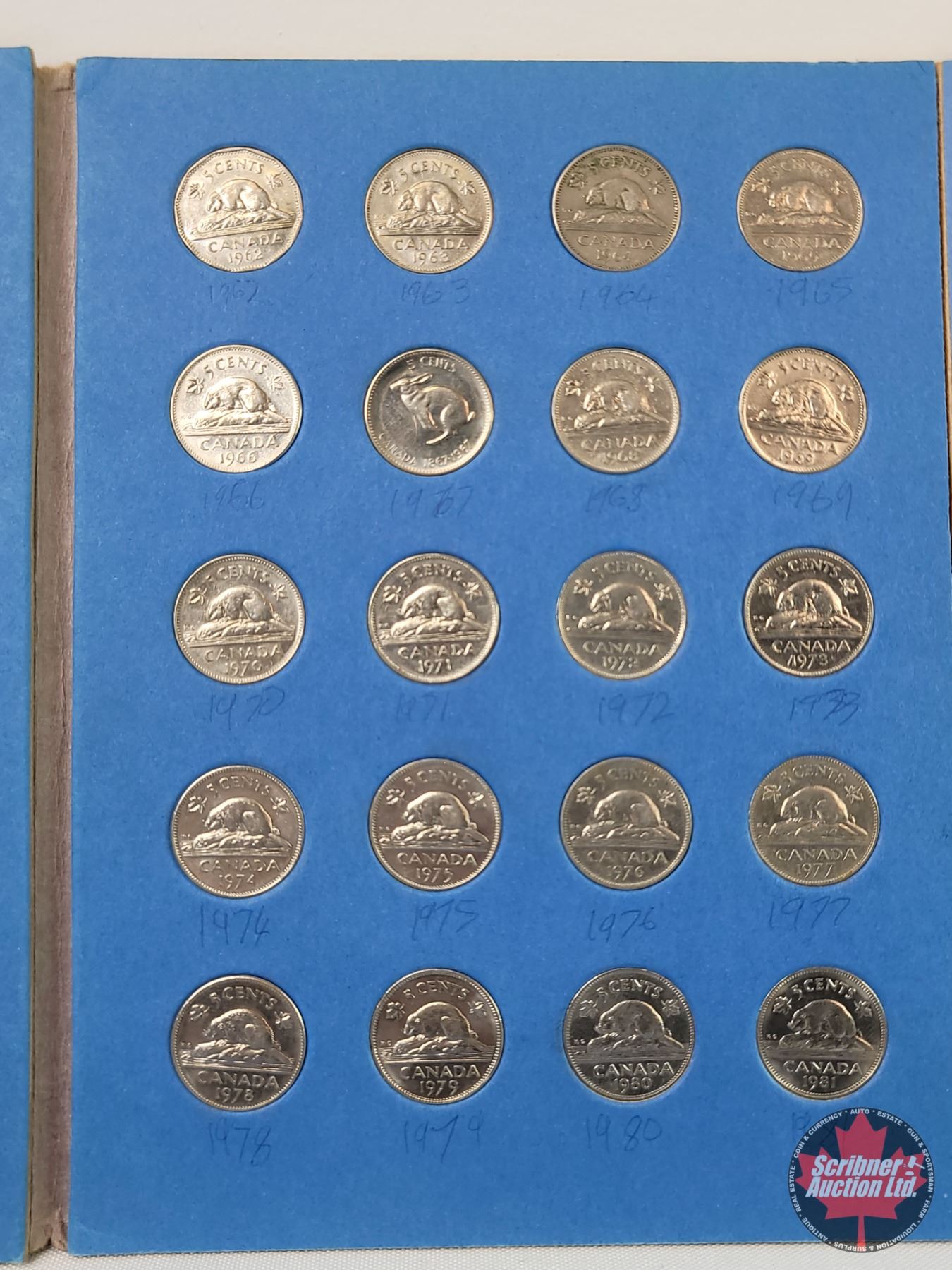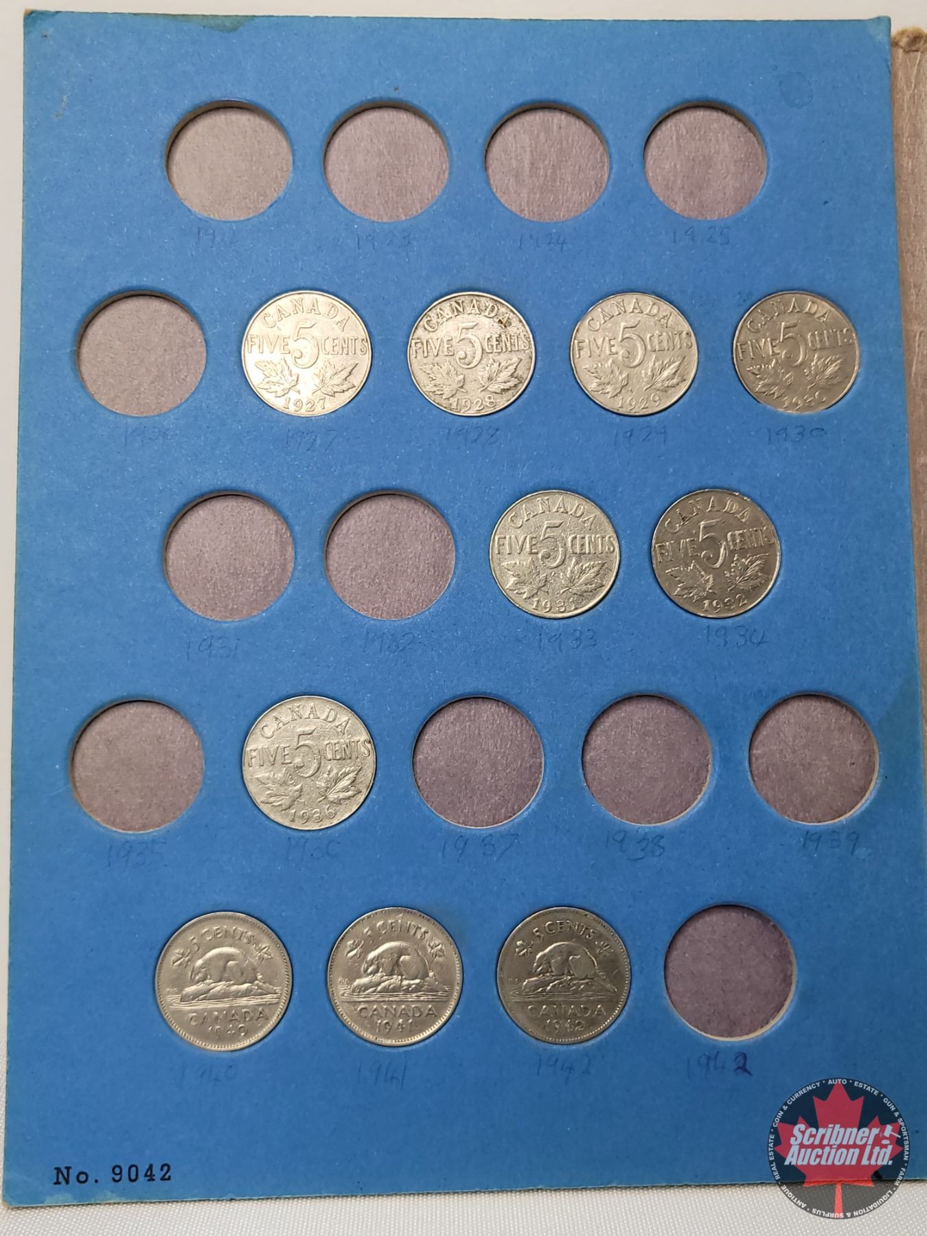 Canada Five Cent Collection in 2 Collector Portfolios (62 Coins) 1927 - 1981 Intermittent (SEE PICS!)