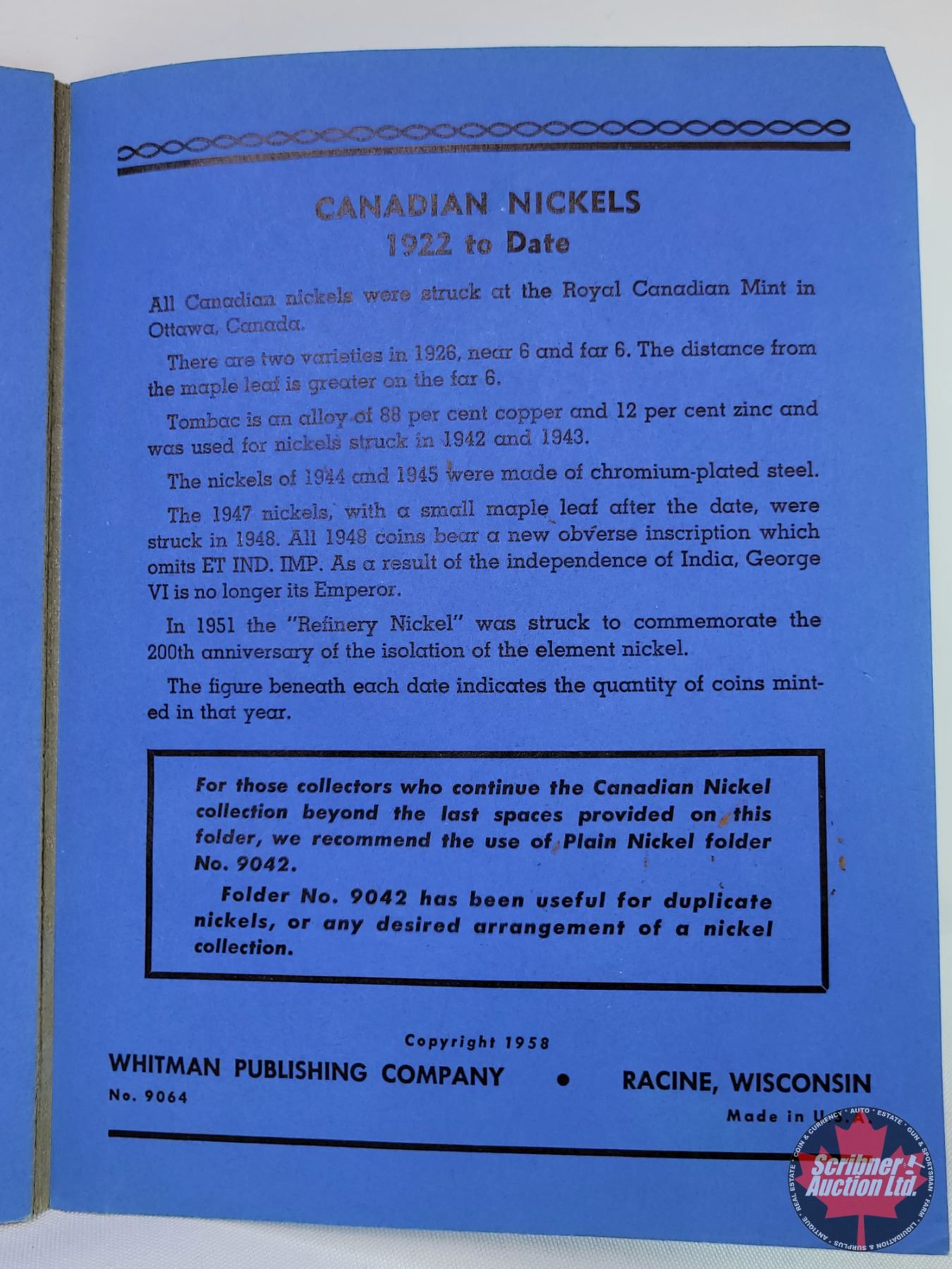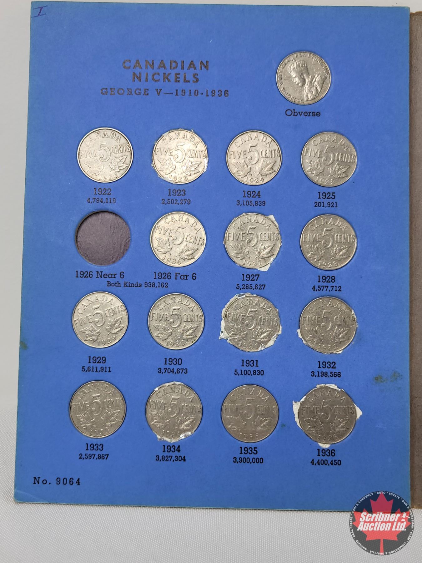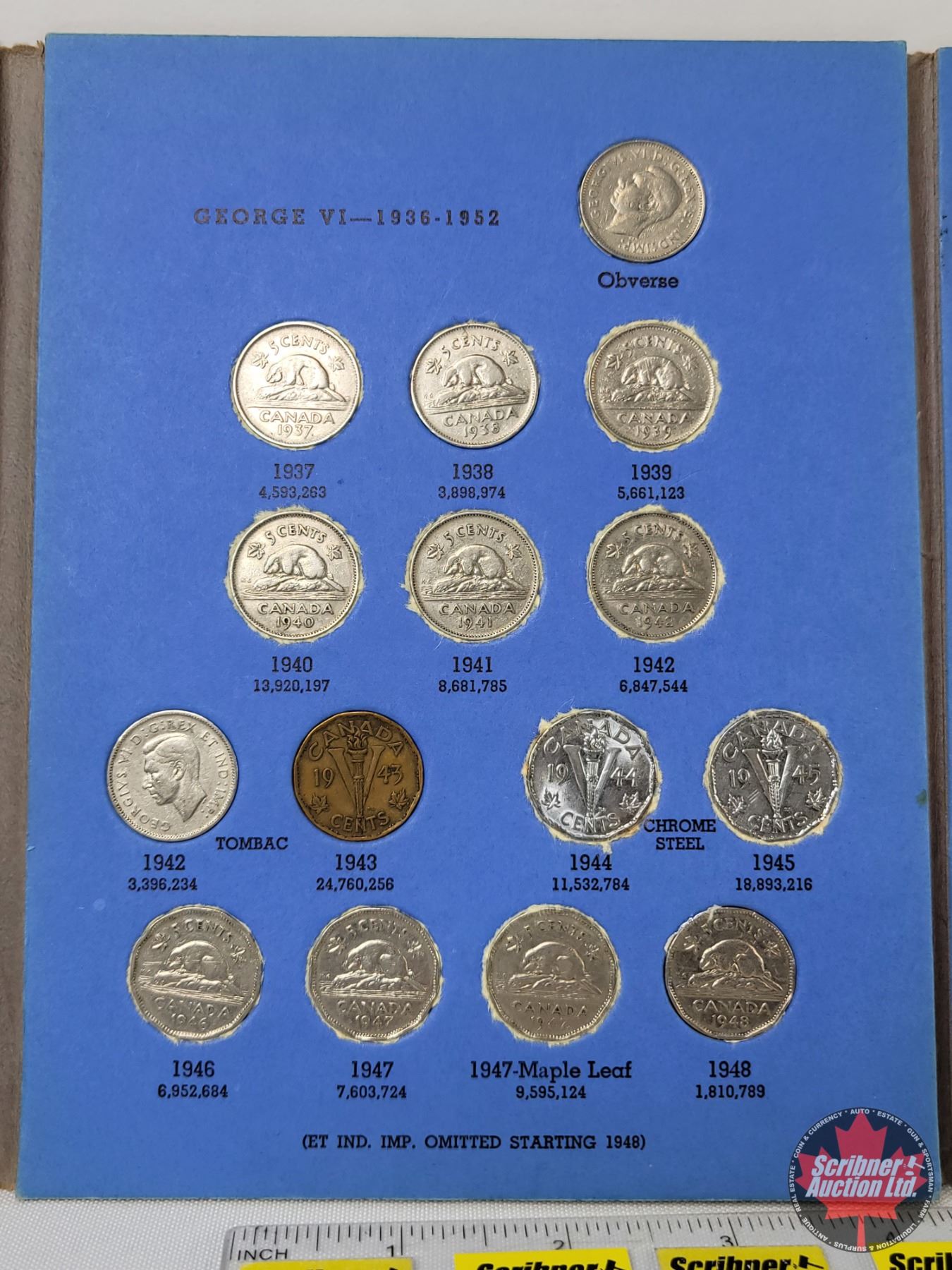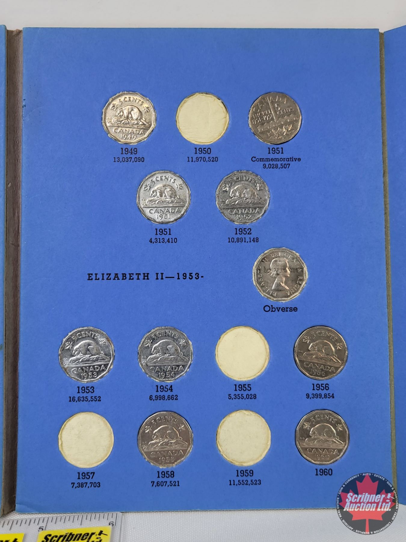 Canada Five Cent Collection in Collector Portfolio (41 Coins) 1922 - 1960 Intermittent (Note: Coins may not be in correct slot - Please View Pictures!) (SEE PICS!)