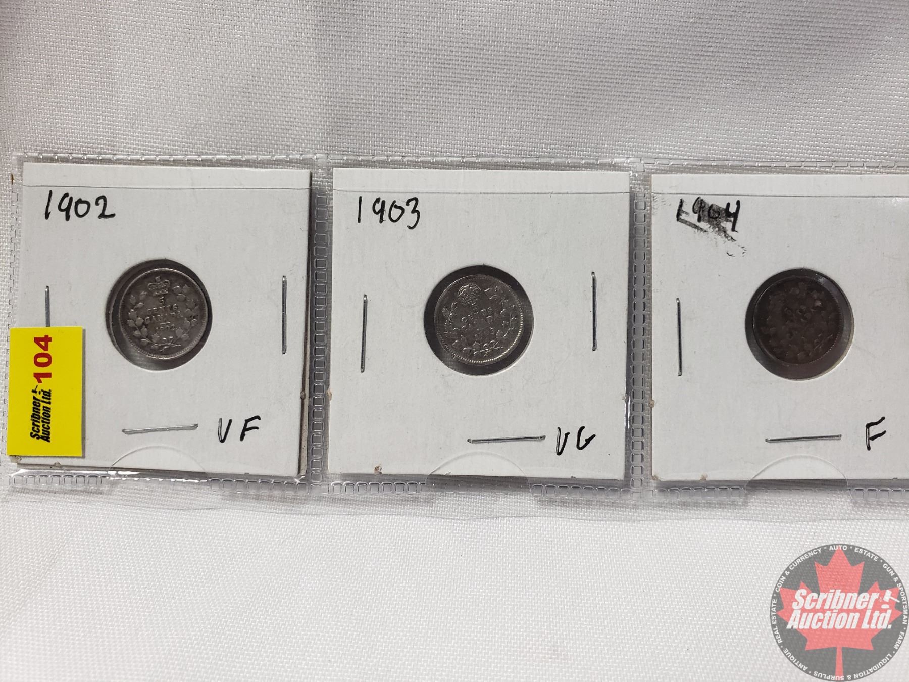 Canada Five Cent - Strip of 3: 1902; 1903; 1904