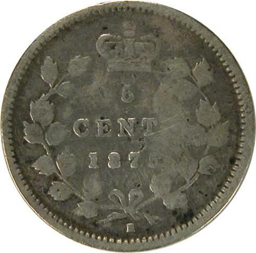 Canada Five Cents 1875H Small Date, Good. Lightly toned