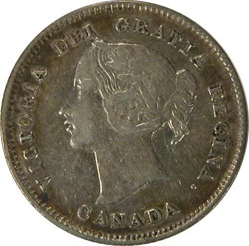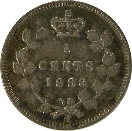 Canada Five Cents 1880H Obverse 2, F-VF. Lightly toned