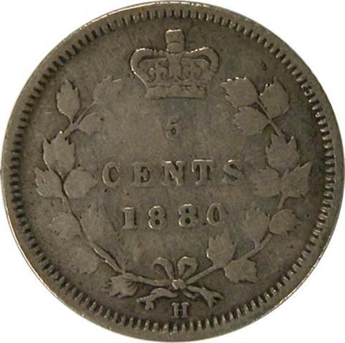 Canada Five Cents 1880H Obverse 2, Fine. Lightly toned