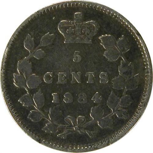 Canada Five Cents 1884 Far 4, Fine, Cleaned. Lightly toned