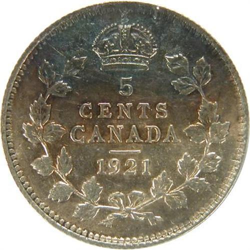 1921 ICCS VF-30. This is a sharp example of the “Prince of Canadian Coins” with considerable remaining lustre and an attractive pale golden toning with amber and medum blue accents on the reverse.