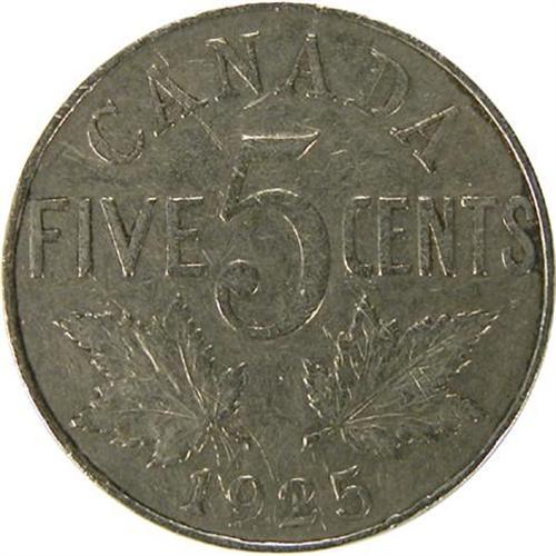 Canada Five Cents 1925 Fine. Scratches and rim bumps