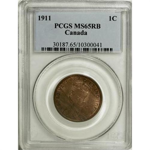 <B>George V Cent 1911,</B></I> KM15, MS65RB PCGS, a lustrous example of this one-year type.<BR><BR><b>Shipping:</b> Coins & Currency (<a target="_blank" href="http://www.heritageauctions.com/common/shipping.php">view shipping information</a>)