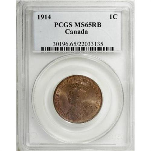 <B>George V Cent 1914,</B></I> KM21, MS65RB PCGS, nicely toned with glossy surfaces and considerable mint luster.<BR><BR><b>Shipping:</b> Coins & Currency (<a target="_blank" href="http://www.heritageauctions.com/common/shipping.php">view shipping information</a>)
