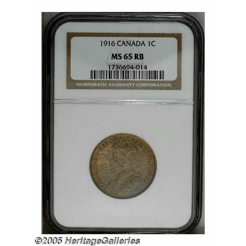 Canada. George V Cent 1916, KM21, MS65 Red and Brown NGC. George V Cent 1916,