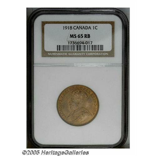 Canada. George V Cent 1918, KM21, MS65 Red and Brown NGC. George V Cent 1918,