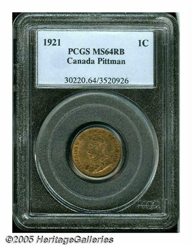 <B>George V Cent 1921, </B></I>KM28, MS64 RB Pittman Collection PCGS.