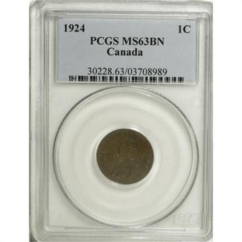 <B>George V Cent 1924, </B></I> KM28, MS63BN PCGS, exceptionally sharp details, scarce grade.<BR><BR><b>Shipping:</b> Coins & Currency (<a target="_blank" href="http://www.heritageauctions.com/common/shipping.php">view shipping information</a>)
