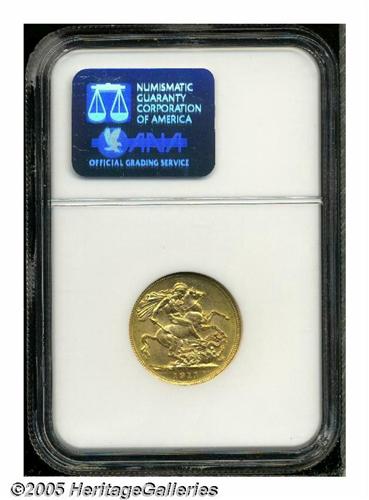 <B>George V gold Sovereign 1911C, </B></I>KM20, MS64 NGC.