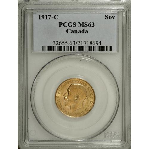 <B>George V gold Sovereign 1917C, </B></I>KM20, MS63 PCGS, fully lustrous.<BR><BR><b>Shipping:</b> Coins & Currency (<a target="_blank" href="http://www.heritageauctions.com/common/shipping.php">view shipping information</a>)