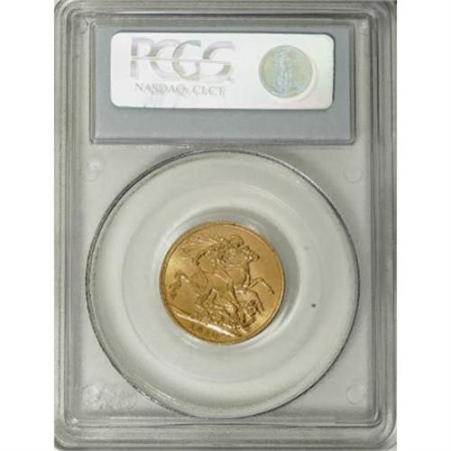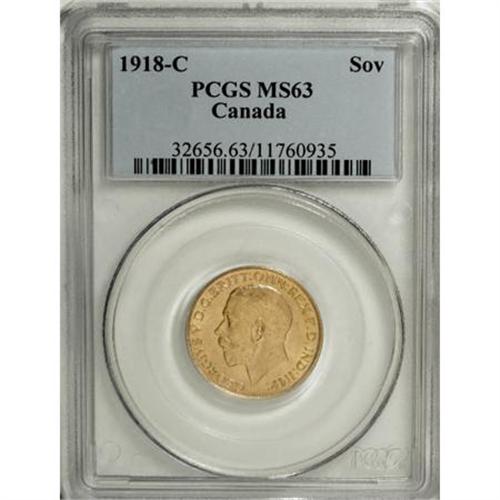 <B>George V gold Sovereign 1918C,</B></I> KM20, MS63 PCGS, lightly toned, a nice original coin.<BR><BR><b>Shipping:</b> Coins & Currency (<a target="_blank" href="http://www.heritageauctions.com/common/shipping.php">view shipping information</a>)