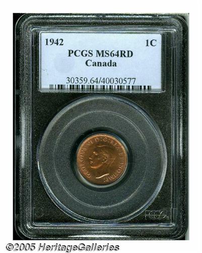 Canada. George VI Cent 1942, KM32, MS64 RD PCGS.