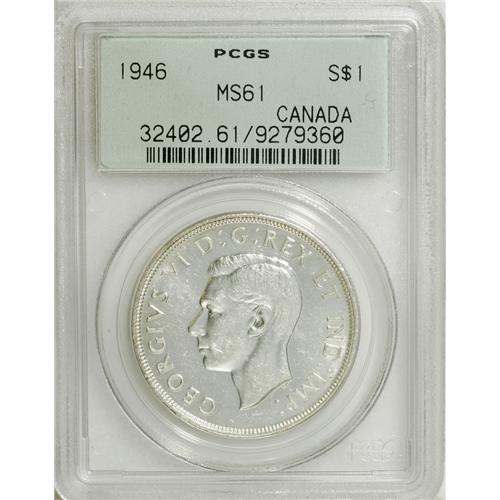Canada: George VI Dollar 1946, KM37, MS61 PCGS,