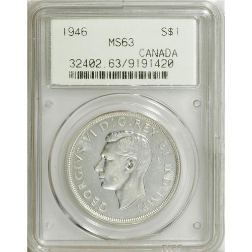 Canada: George VI Dollar 1946, KM37, MS63 PCGS,