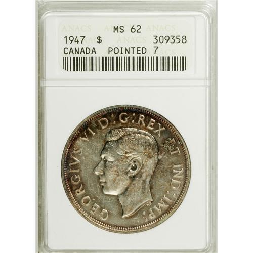 Canada: George VI Dollar 1947 Pointed 7 4X HP, K