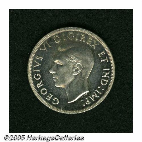 <B>George VI Matte Specimen Dollar 1939, </B></I>KM38, superb brilliant surfaces, but with one tiny, noticeable scratch beneath the FIDE on the reverse.