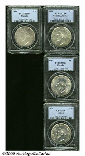 <B>George VI PCGS Certified Quartet, </B></I>1937 MS63, 1950 MS64, 1951 MS64, and 1951 Arnprior AU58.