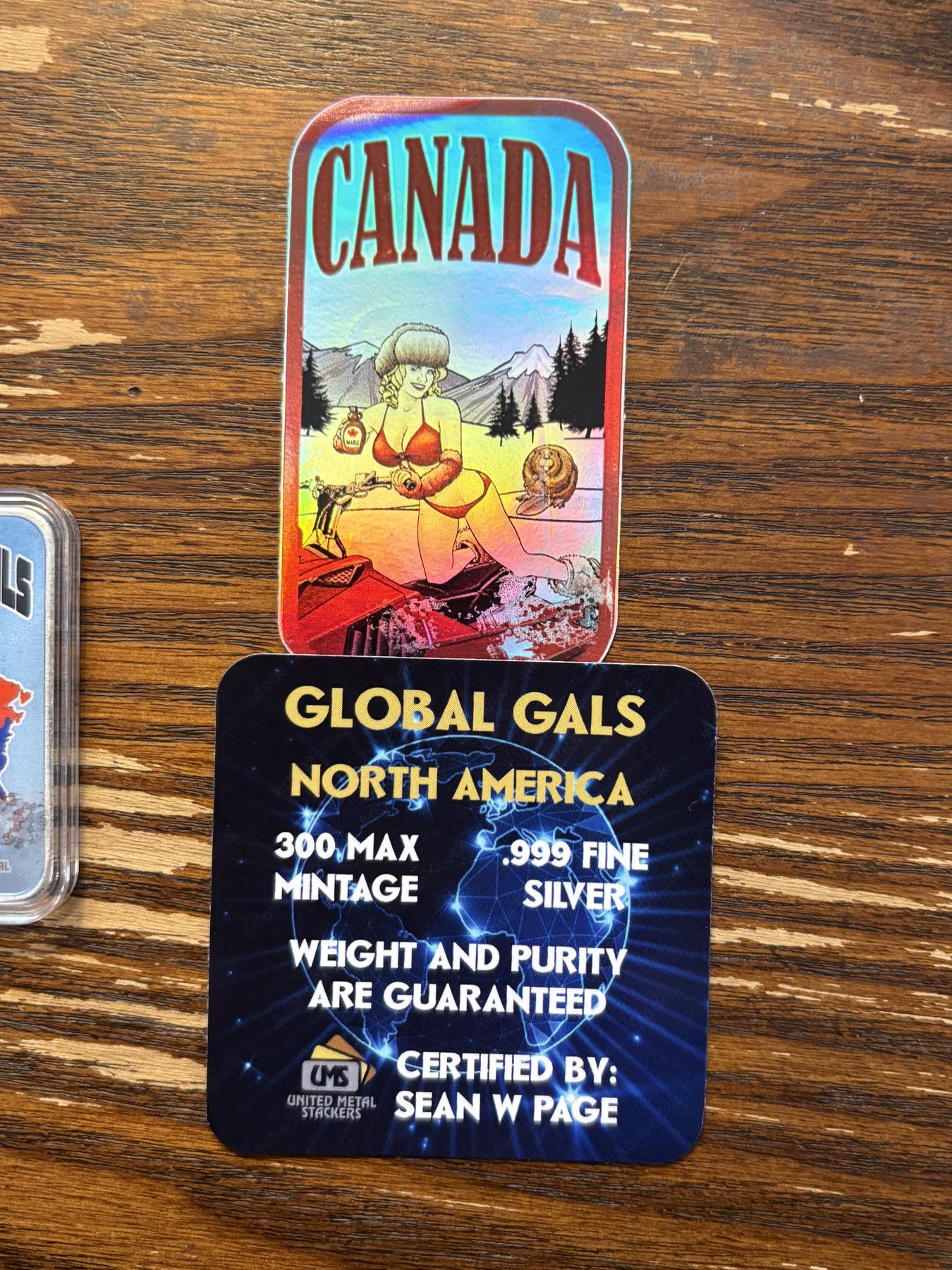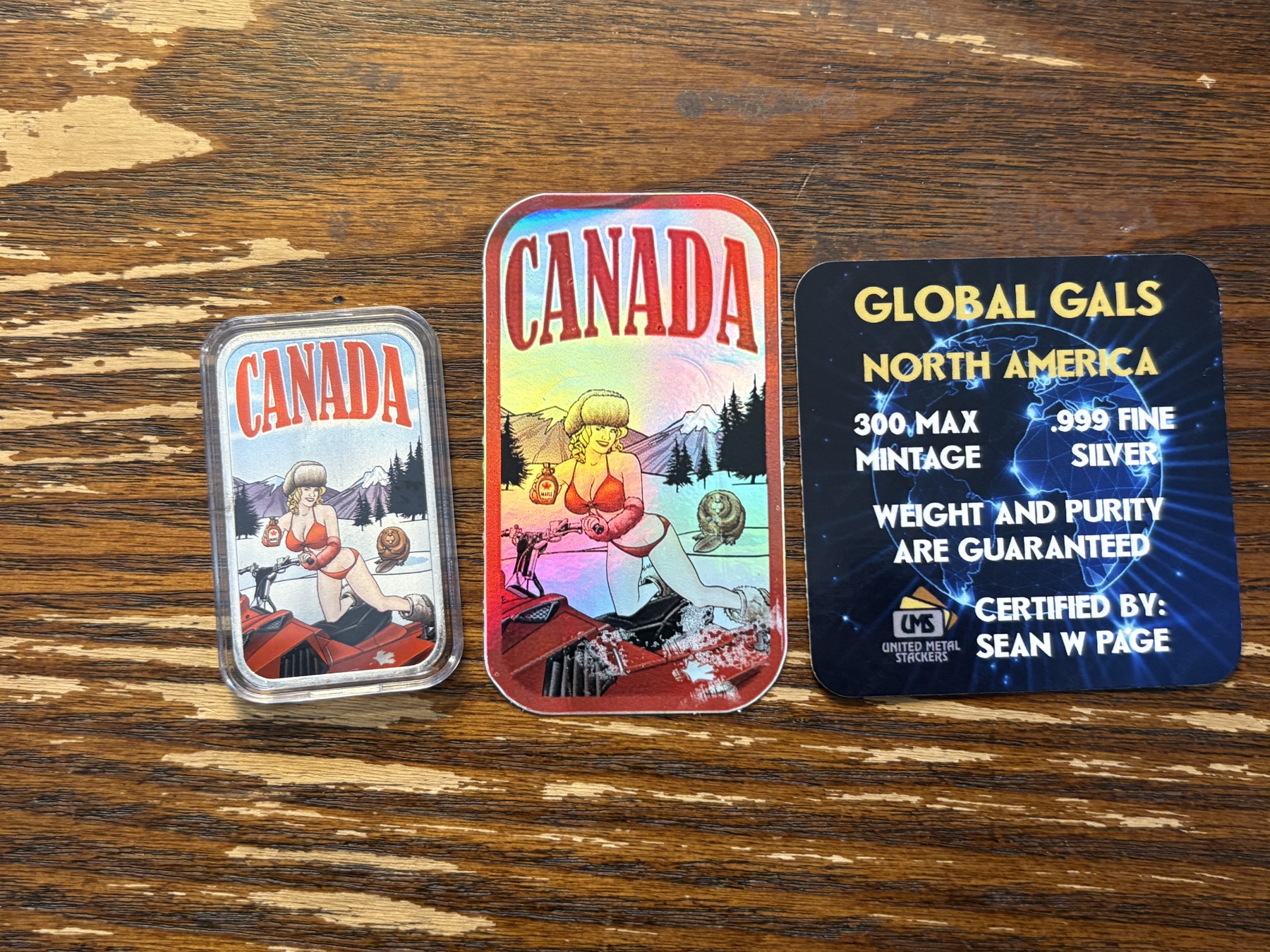 Canada Global Gals .999 Fine Silver Bar Encapsulated - With Sticker & Card - Certified by Sean W. Page - United Metal Stackers - 300 Max Mintage