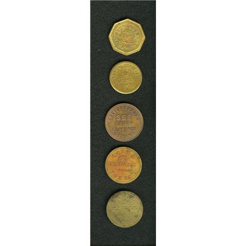 <B>Canada Group Lot of Five Breton Tokens.</B></I> B-762, B-764, B-769, B-772 No Star, and B-772, With Star. Each grades AU or better. From CNA Convention 1970 auction. Current market value about $150.