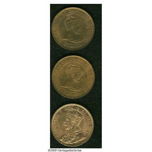 <B>High Grade Large Cent Trio, </B></I>Edward VII KM8 1903, two examples, lustrous UNC and choice UNC, nearly full red, just a couple of tiny spots, and George V KM15 1911, UNC, fully lustrous. <B>Sold as is, no return lot.</B></I>