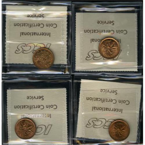 <B>ICCS Certified Cent Selection,</B></I> George V 1936 MS64 Red, George VI 1938 MS64 Red, 1943 MS64 Red and 1944 MS63 Red & Brown. Four very attractive examples. <B>Sold as is, no return lot.</B></I><BR><BR><b>Shipping:</b> Coins & Currency (<a target="_blank" href="http://www.heritageauctions.com/common/shipping.php">view shipping information</a>)