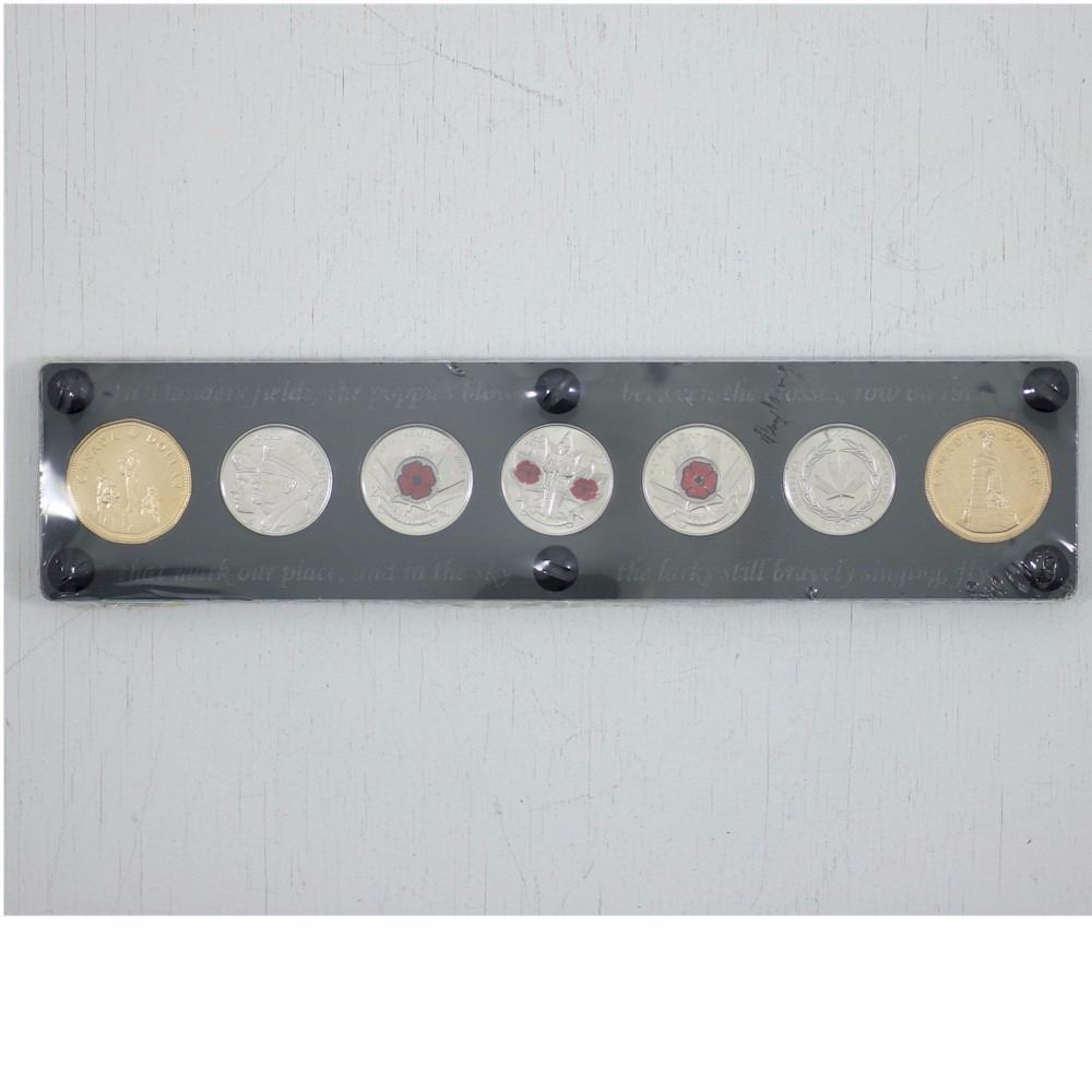 This set contains: 1994 Memorial Dollar and 1995 Peacekeeping Loon, 2004 Poppy 25-cent, 2005 Veteran's 25-cent, 2008 Poppy 25-cent, and the 2010 Poppy 25-cent.