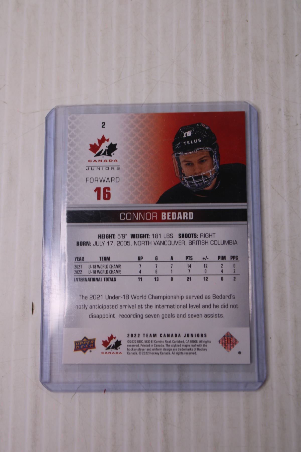 Canada Juniors Hockey Trading Card - Connor Bedard