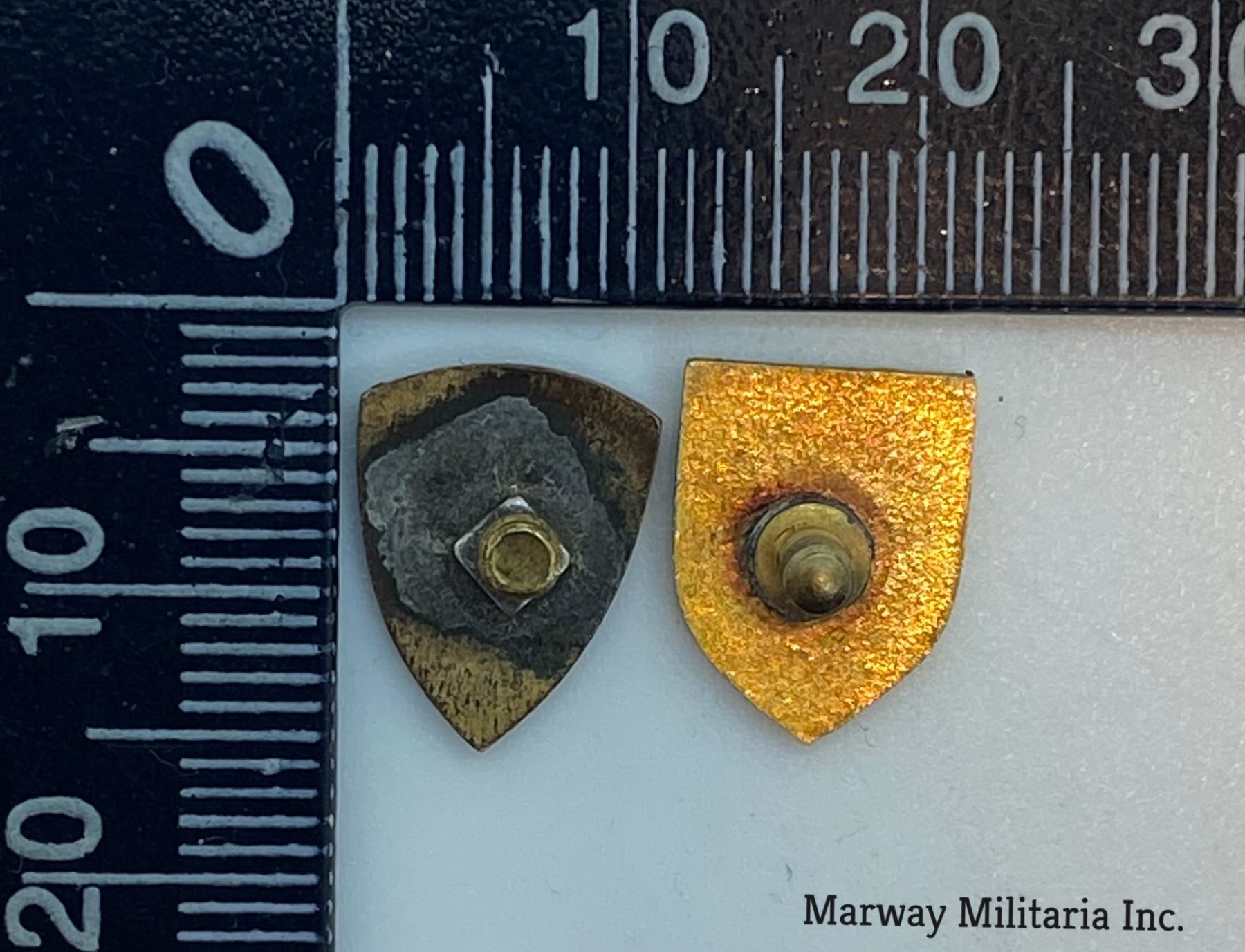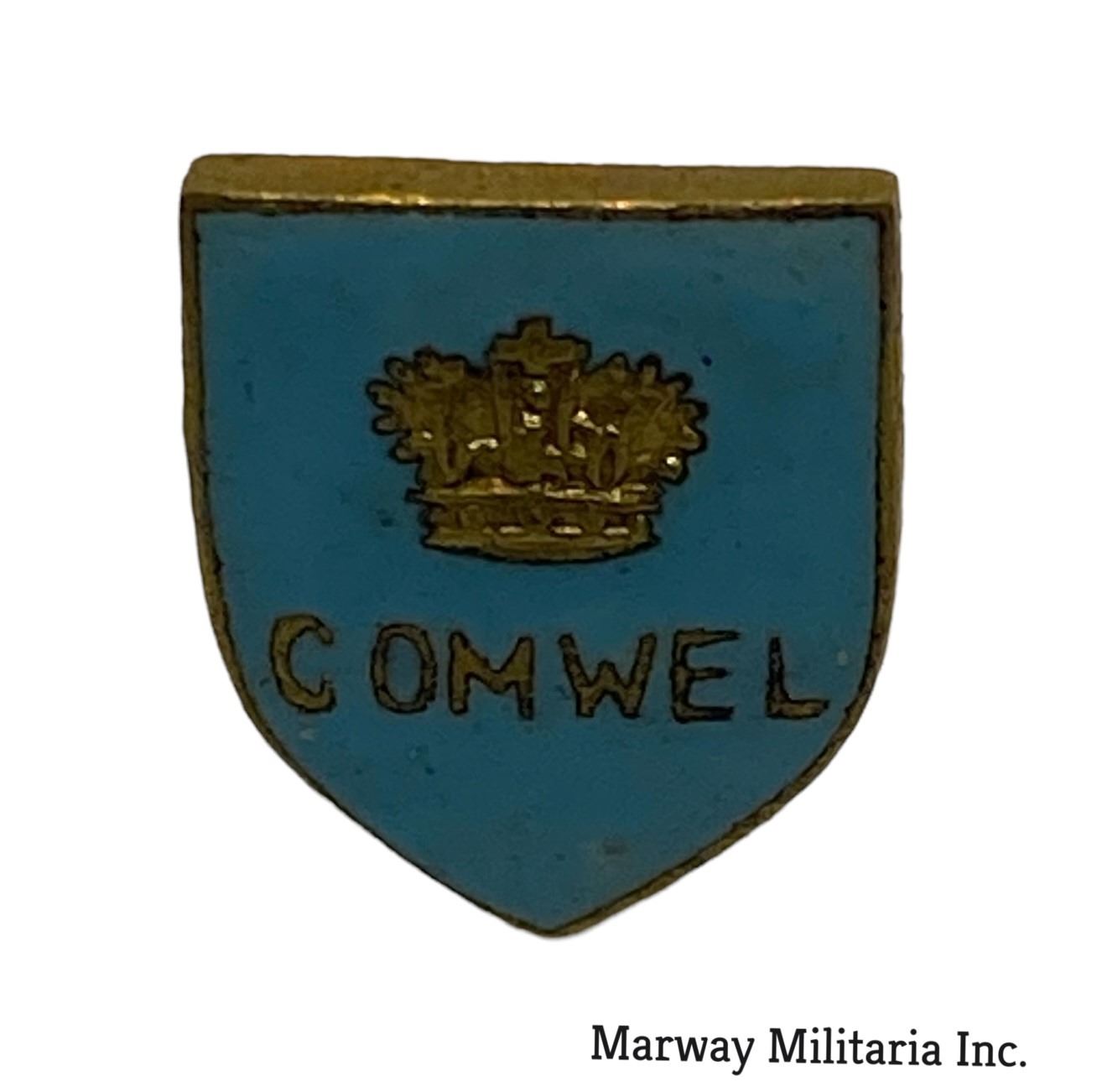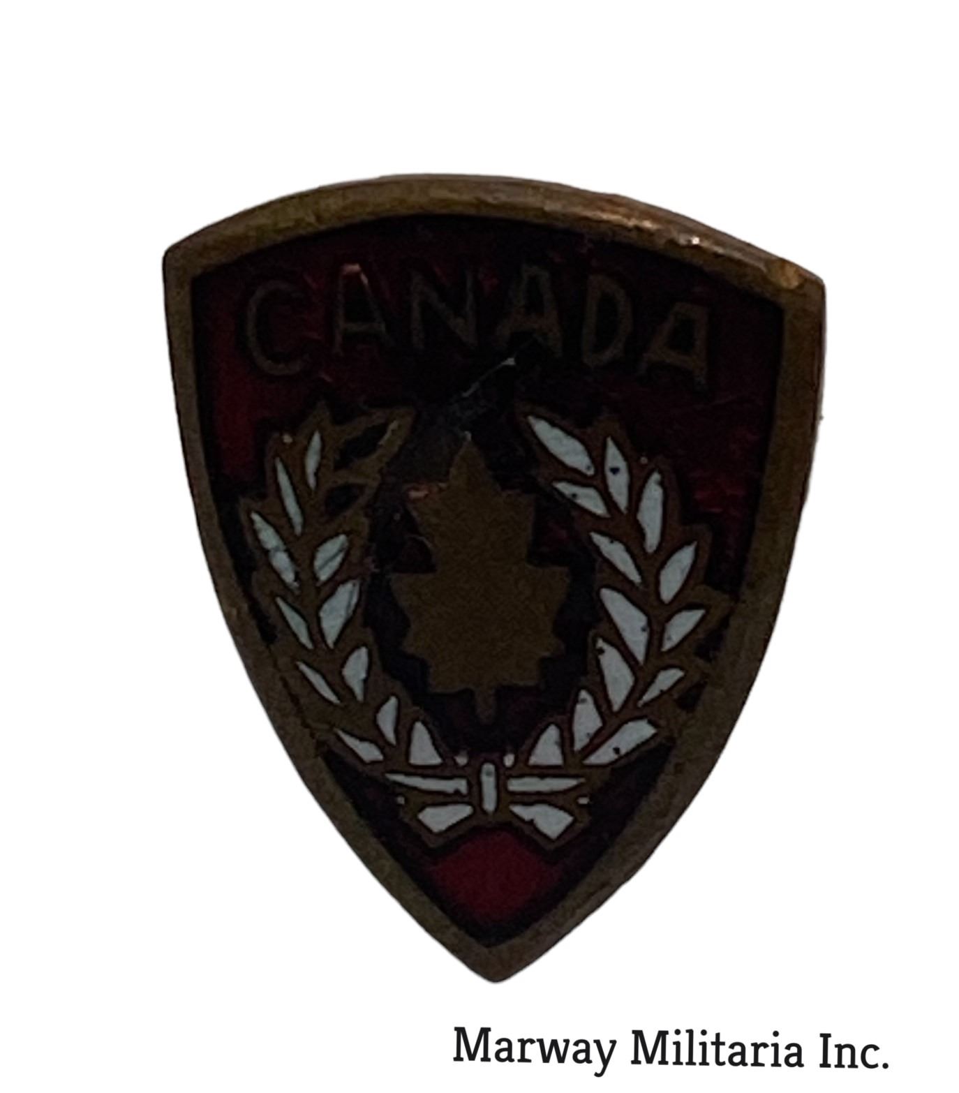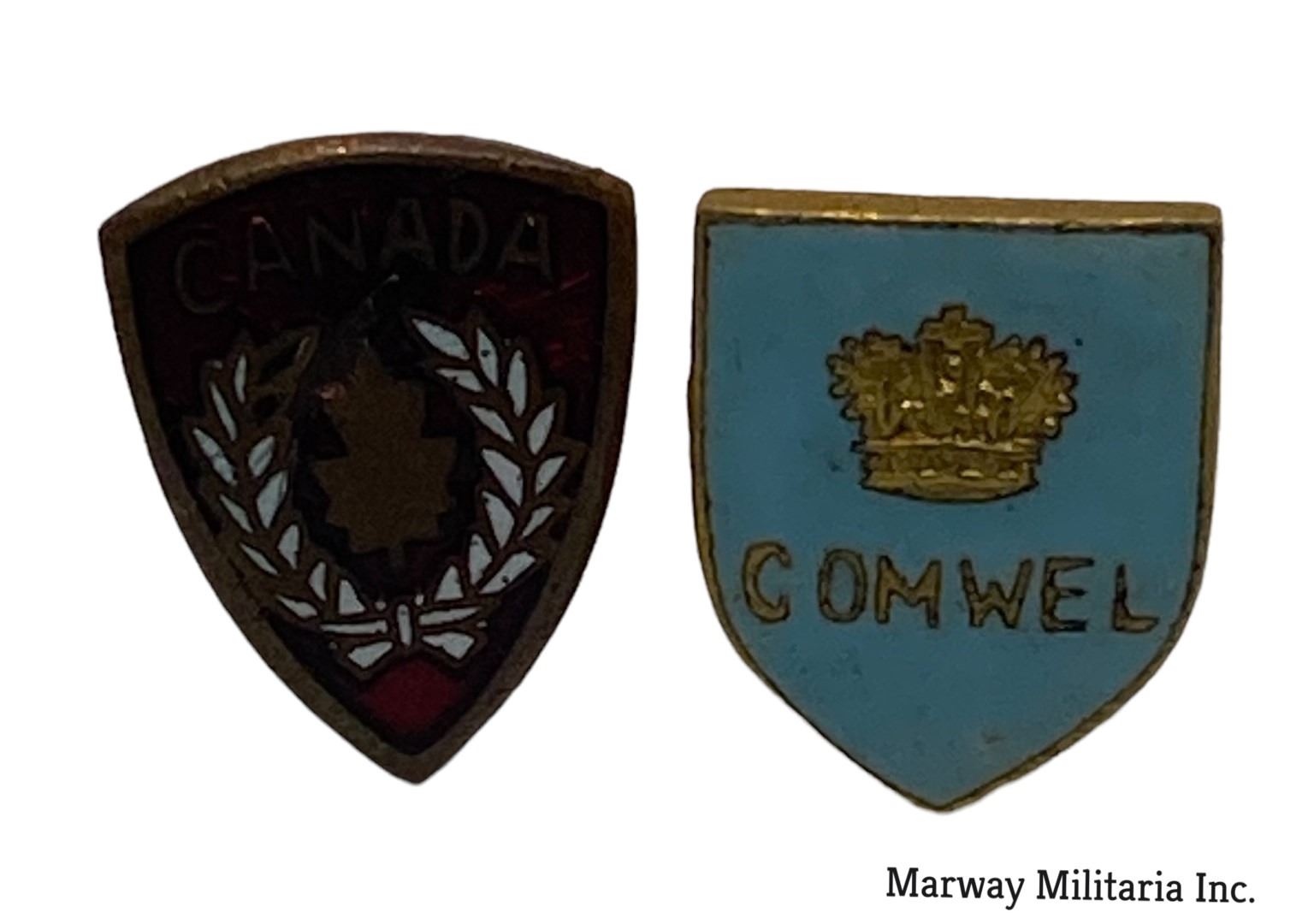 Lot of 2. Red enamel with words CANADA, other in French grey blue with COMWEL. Both screw back.