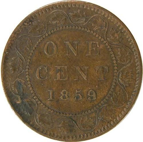 Canada Large Cent 1859 Wide 9 Over 8, EF