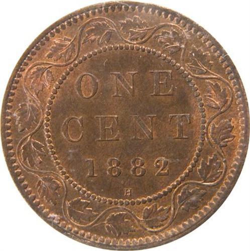 Canada Large Cent 1882H Obverse 2 ICCS MS-64 Red. This is a very strongly struck and strongly lustrous piece with near flawless surfaces that are about 75% red. Only three examples of the date have been graded higher by ICCS