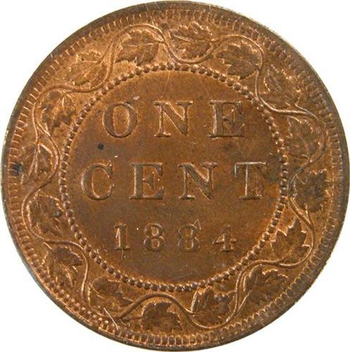 Canada Large Cent 1884 Obverse 2 ICCS MS-63 Red. A fully struck and strongly lustrous piece with about 65% red