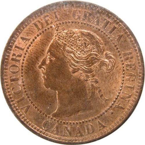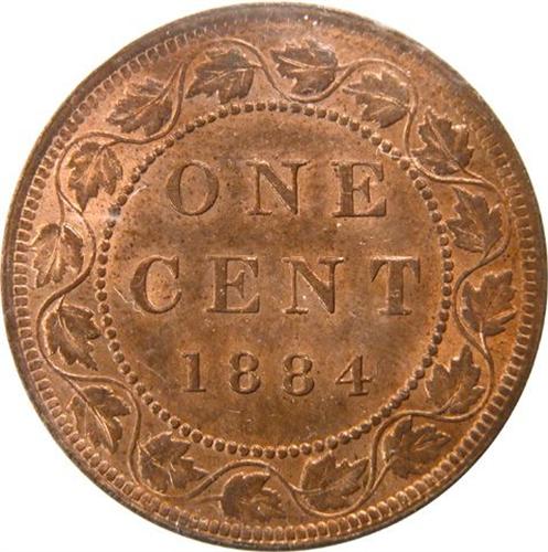 Canada Large Cent 1884 Obverse 2 ICCS MS-64 Red. This is a fully struck and strongly lustrous piece with quite flawless surfaces that are about 80% red. Only five examples of the date have been graded higher by ICCS