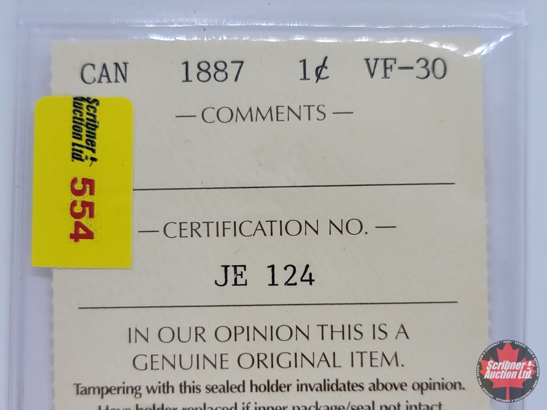 Canada Large Cent 1887 (ICCS Cert: VF-30) (SEE PICS!)