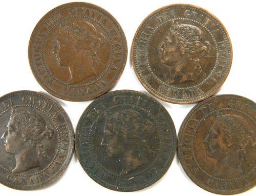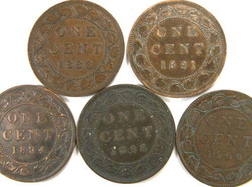 Canada Large Cent 1891-1900 2 VF, 3 EF