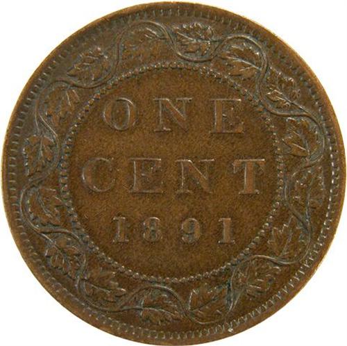 Canada Large Cent 1891 Small Date, Small Leaves, Obverse 2 VF. A nice, problem-free example