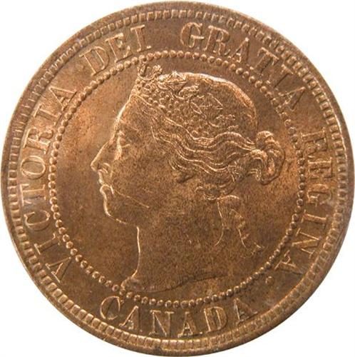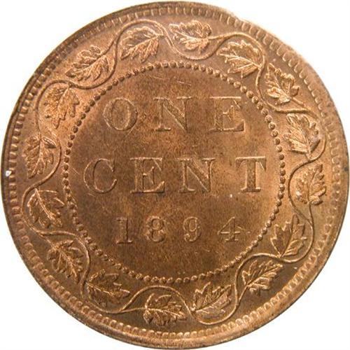 Canada Large Cent 1894 ICCS MS-65 Red. Tied highest ICCS. This is a fully struck piece with great lustre and near flawless surfaces that are well over 90% red. It is tied as the highest graded by ICCS